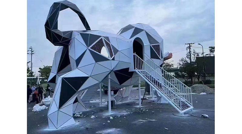Inspired by elephants, this combination slide adopts a geometric - piecing design approach. Irregular geometric surfaces are skillfully combined to create a highly modern and artistic appearance. The main body is made of high - quality stainless steel, which offers excellent corrosion resistance and sturdiness, enabling it to withstand complex outdoor environmental conditions.